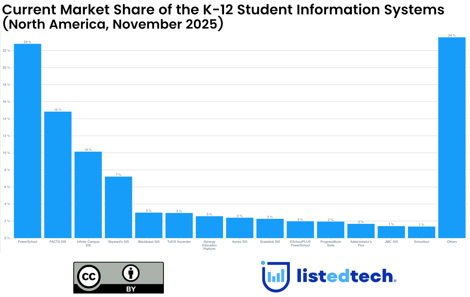 We list SIS providers (largely K-12, as higher education institutions are more likely to be hosted on premises) such as PowerSchool, Edmodo, Aeries Software and Augusoft